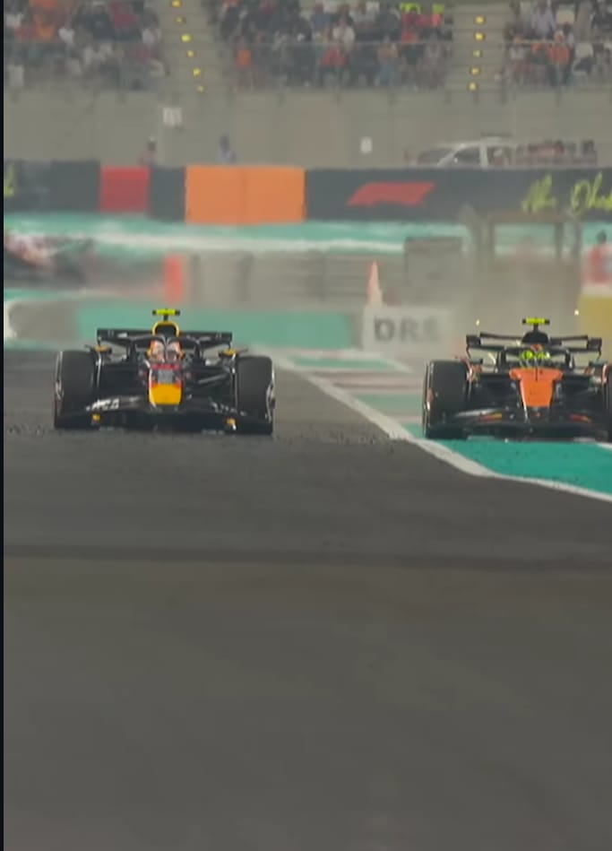 The race began with huge tension. Norris only needed a top three finish to secure the championship, but the opening seconds were far from comfortable. As the grid launched away from the start line, Oscar Piastri reacted faster and slipped past Norris into Turn 1. Losing a position to his own team mate was not ideal and immediately added pressure to Norris’s title bid.