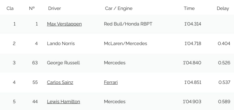 Behind the top 3 the Mercedes duo were right behind SAI in 4th. Very close between the top 6. RUS managed to take SAI. After this the order didn’t really change.