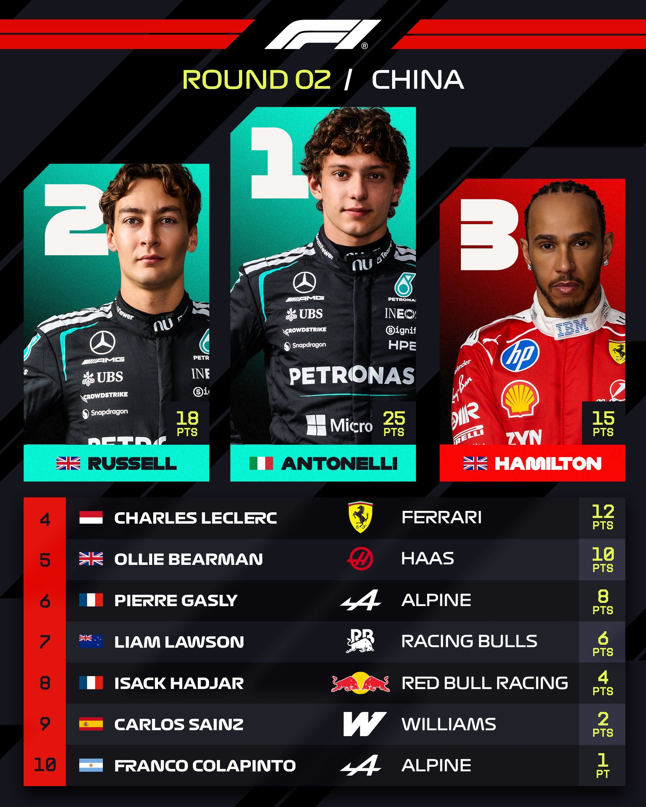 Ultimately the race will be remembered for Kimi Antonelli’s breakthrough victory. The young Mercedes driver delivered a calm and technically precise performance to secure the first Grand Prix win of his career.