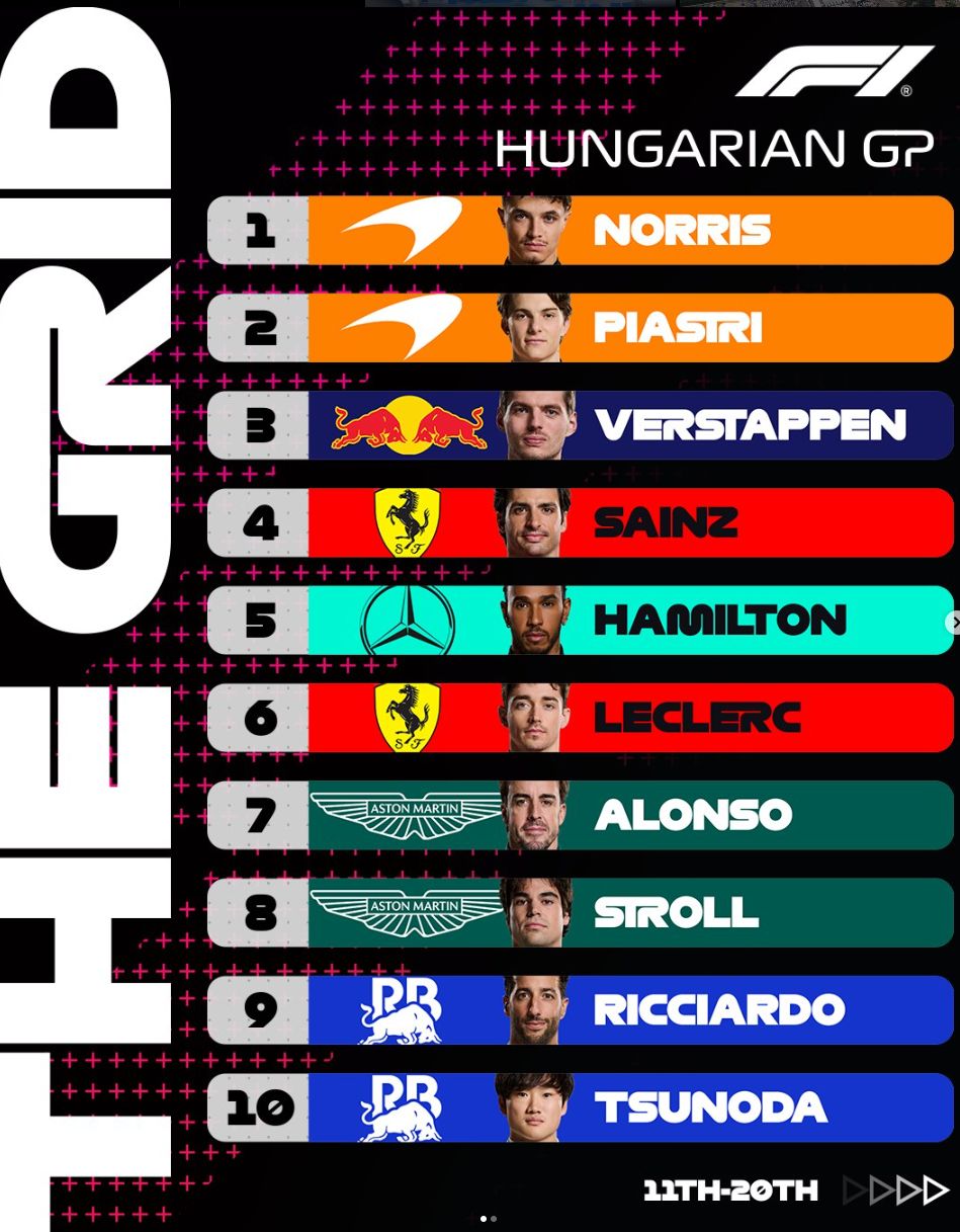 Qualifying was smooth for McLaren. Norris set a great time, and Piastri placed between Norris and Verstappen. A late red flag gave everyone one more lap, but no one improved their times. Ricciardo ended up with a better position than Tsunoda.