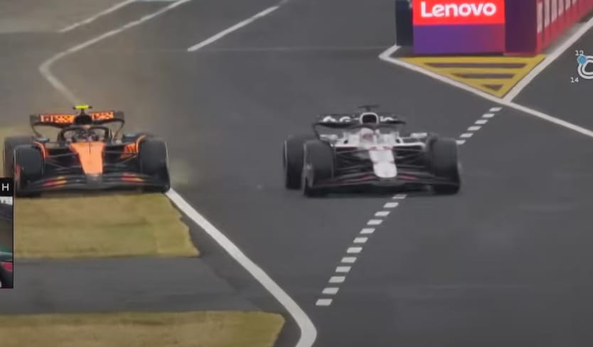 Ultimately this led to Norris and Verstappen leaving the pit at the same time and Norris going onto the grass as he wouldn’t yield when it was Max’ line. Him complaining on the radio was more likely to lead to an unsafe release rather than a penalty for Max.