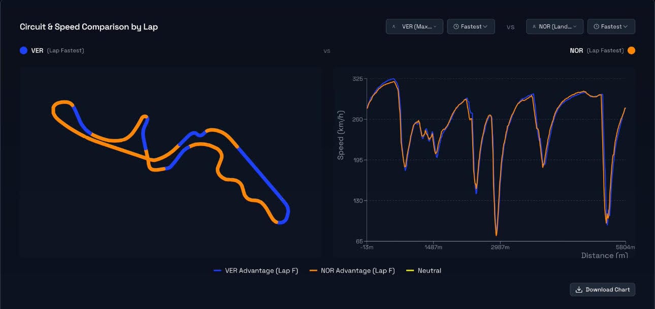 Norris Faster than Verstappen on the majority of the circuit
