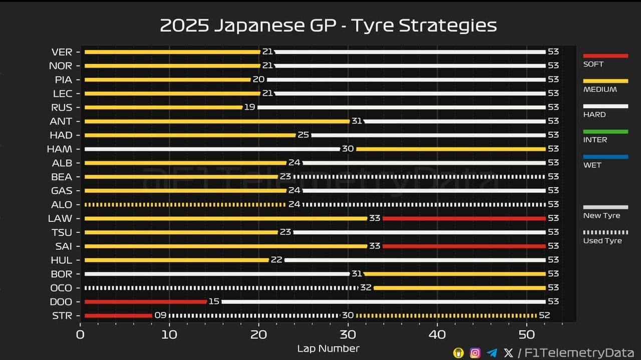 Lap 20 came and pit stops started. Piastri pitted for Hards, but they were cold and difficult to warm up. McLaren could have been smart: pit Piastri early and let Norris stay out longer than Verstappen going for the over cut. McLaren’s strategy team needed to take the risk.